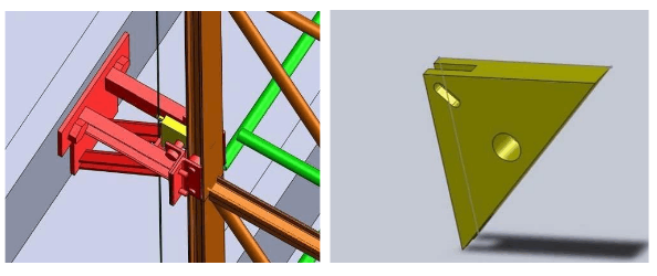 防坠原理说明:防坠装置以销轴固定在附墙支座内部,其后部为钢板焊制紧固件,以控制防坠块在设计预想范围内制动。
